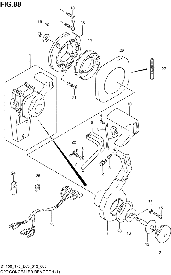 Подобрать оригинальные запчасти на лодочный мотор Suzuki модель 2013 года - Opt:concealed remocon