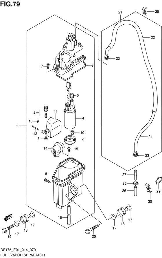 Подобрать оригинальные запчасти на подвесной лодочный двигатель SUZUKI модель года - Fuel vapor separator