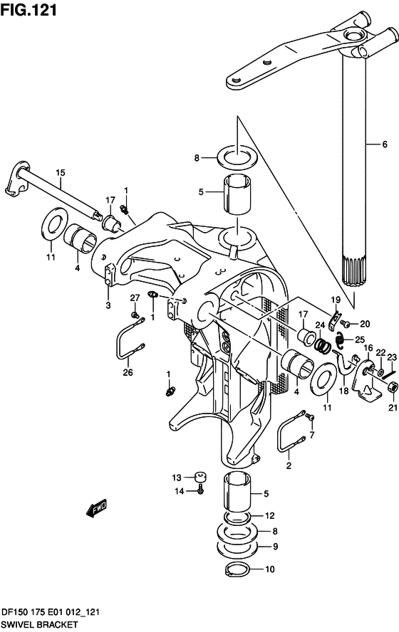 Оригинальные запчасти на подвесной двигатель Suzuki модель 2012 года - Swivel bracket