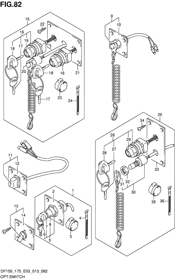 Оригинальные запчасти на мотор Suzuki DF175(Z)TL/X модель 2013 года - Opt:switch