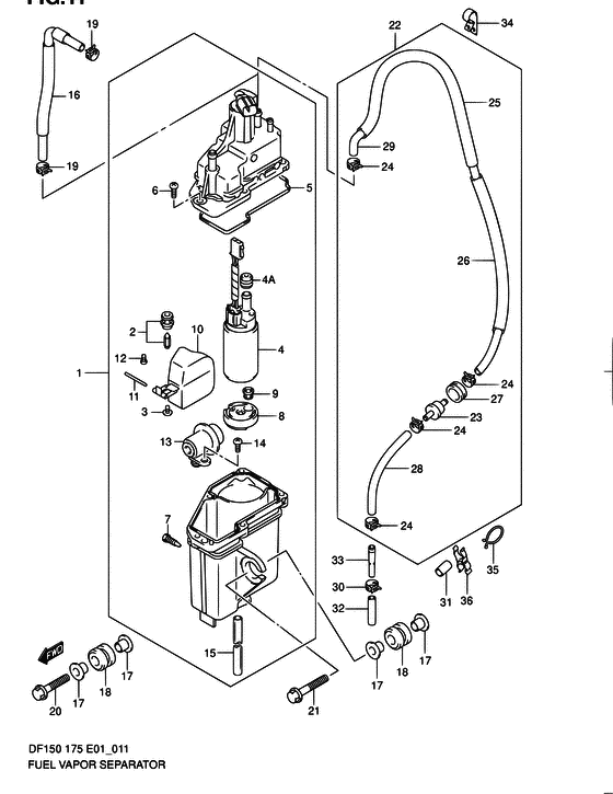 Сепаратор-отделитель паров топлива, в сборе - Separator Assy, Fuel Vapor (DF150T:110122~ DF175T:110093~ DF150Z:110010~ DF175Z:110012~) (Separator Assy, Fuel Vapor)
