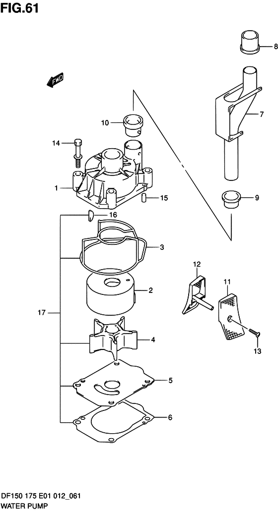 Комплектующие на подвесной лодочный мотор Suzuki DF175(Z)TL/X - Водяной насос