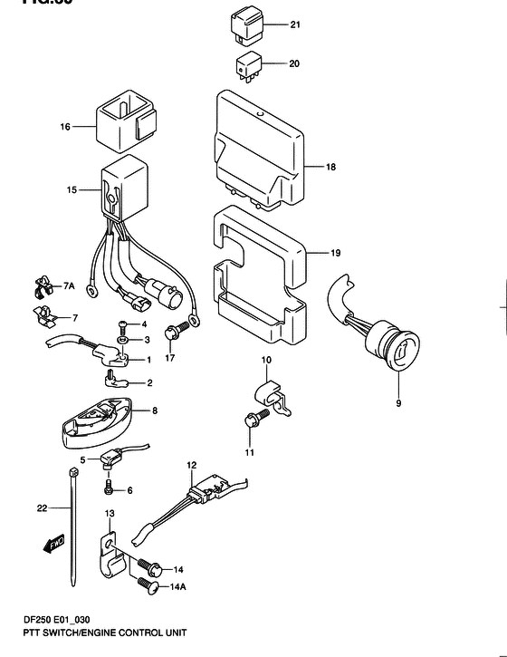 Подобрать оригинальные запчасти на подвесной лодочный мотор Suzuki - Ptt switch / engine control unit