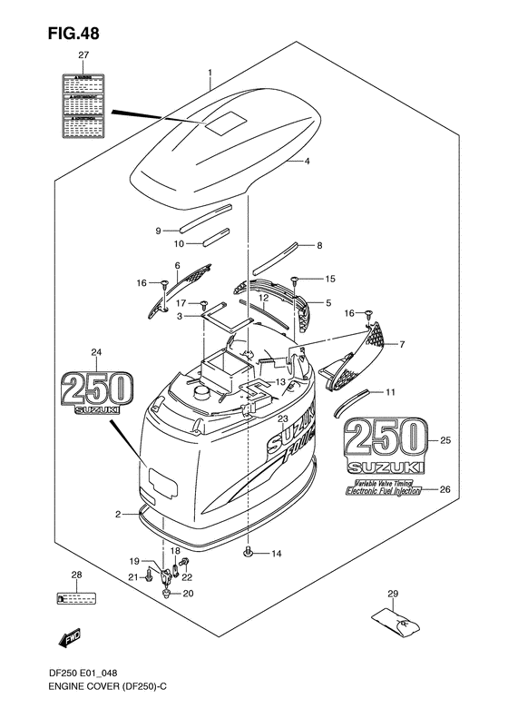 Купить оригинальные запчасти на двигатель Suzuki DF200(Z)TL/X/XX; DF200W(Z)TL/X модель 2009 года - Крышка двигателя (капот) / Engine cover