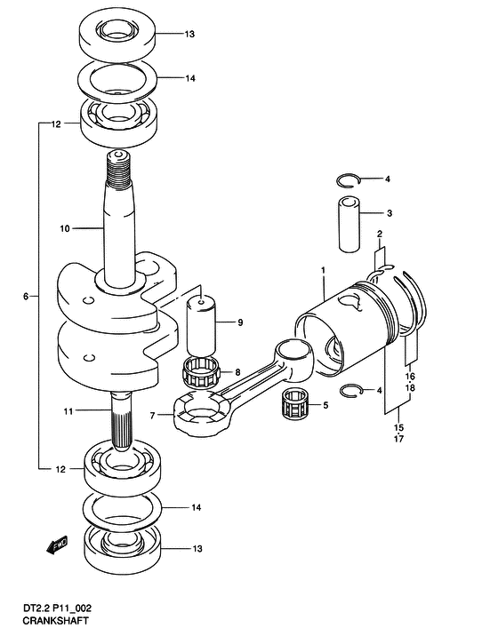 Купить запчасти на лодочный мотор Сузуки модель 2001 года - Crankshaft