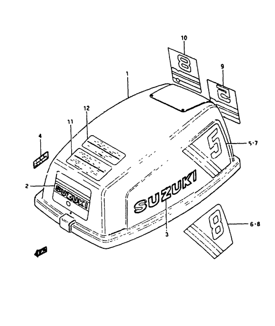 Купить комплектующие на мотор Suzuki - Крышка двигателя (капот) 1 - Engine cover 1
