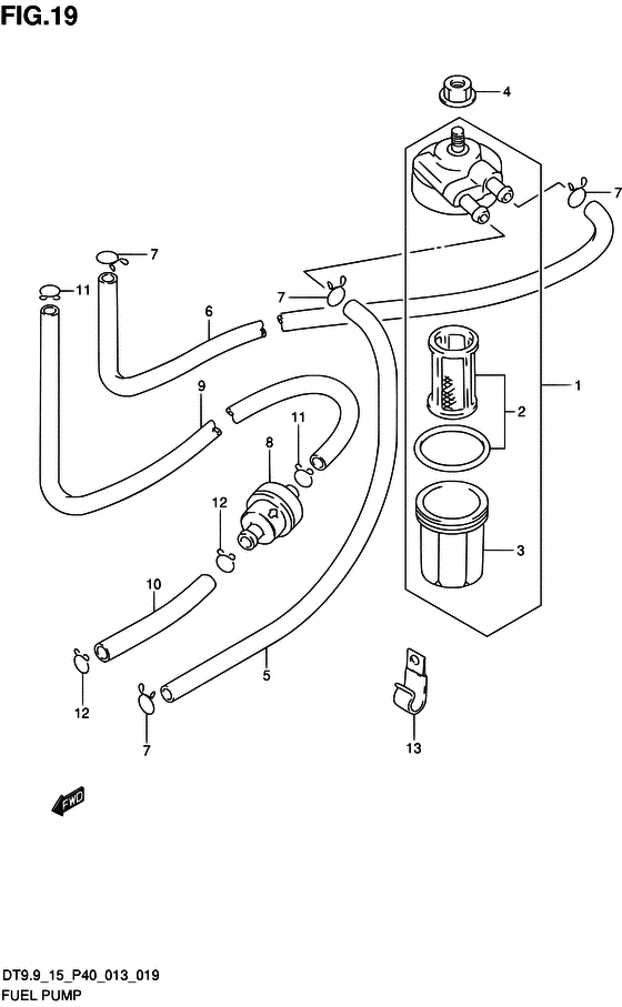Найти запчасти на подвесной двигатель Suzuki модель 2013 года - Топливный насос / Fuel pump