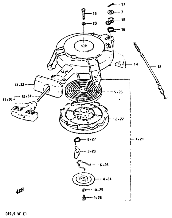 Оригинальные запчасти на лодочный мотор Suzuki модель 1986 года - Стартер / Starter