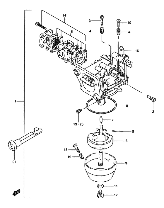 Подобрать запчасти на лодочный подвесной мотор Suzuki модель 1987 года - Carburetor - Карбюратор