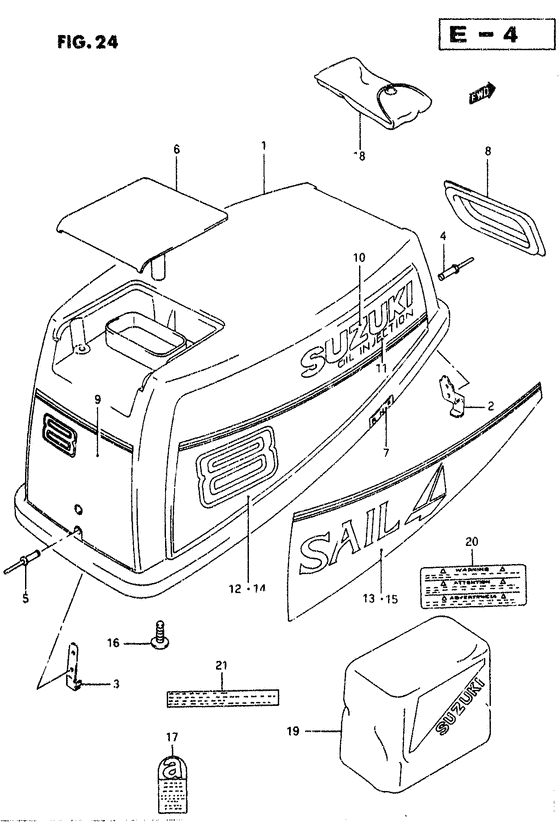 Запчасти на подвесной двигатель Suzuki модель 1993 года - Engine cover - Крышка двигателя (капот)