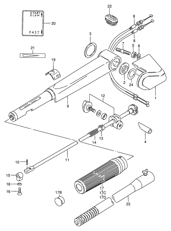 | 17 | 63210-93E30-000 | Рукоятка румпеля - Grip, Handle (Grip, handle # Grip, handle; Dt9.9/15, model:99, 00 ) (Grip, Handle) | | 1 шт | 3390 руб. |