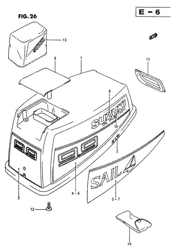 Купить запчасти на лодочный мотор Сузуки - Engine cover - Крышка двигателя (капот)