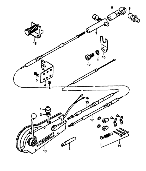| 17 | 67320-93J50-000 | (актуальный код замены) Тросик дистанционного управления (18f: 5.4m) - Cable Assy, Remocon (18f:5.4m) | | под заказ | 8600 руб. |