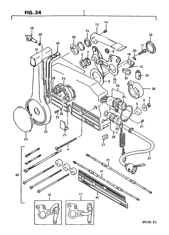Запчасти на лодочный мотор Suzuki модель 1991 года - Remote control - Дистанционное управление