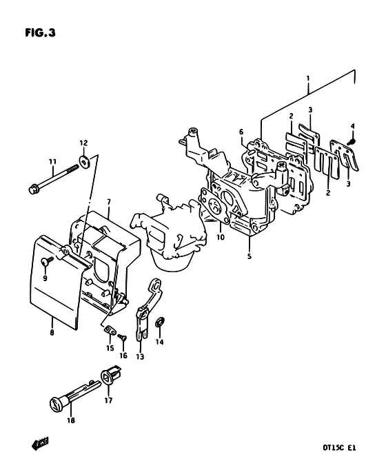 Купить оригинальные запчасти на подвесной двигатель SUZUKI модель 1996 года - Inlet case / вход case