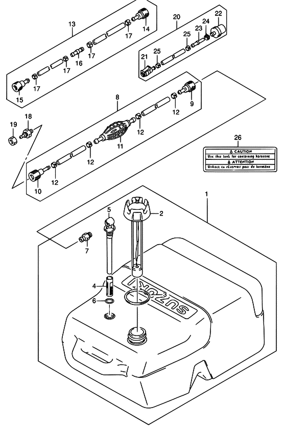 Подобрать запчасти на подвесной двигатель SUZUKI модель 2002 года - Топливный бак / Fuel tank