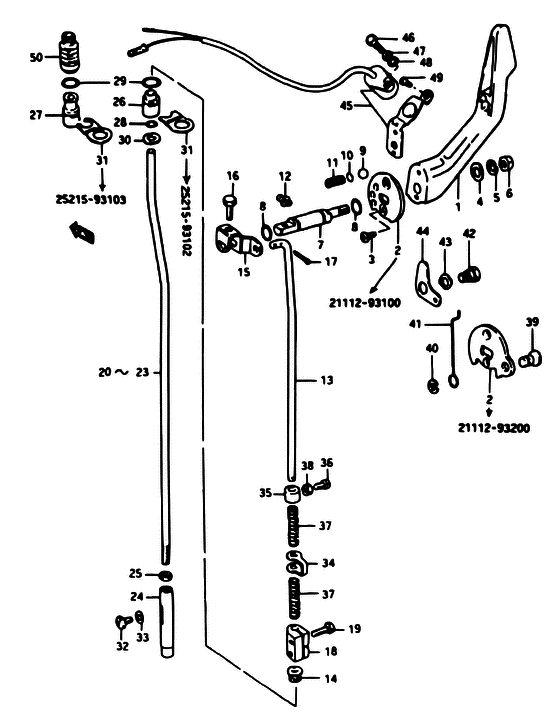 Запчасти на подвесной мотор Suzuki модель 1979 года - Рычаг сцепления / Clutch lever