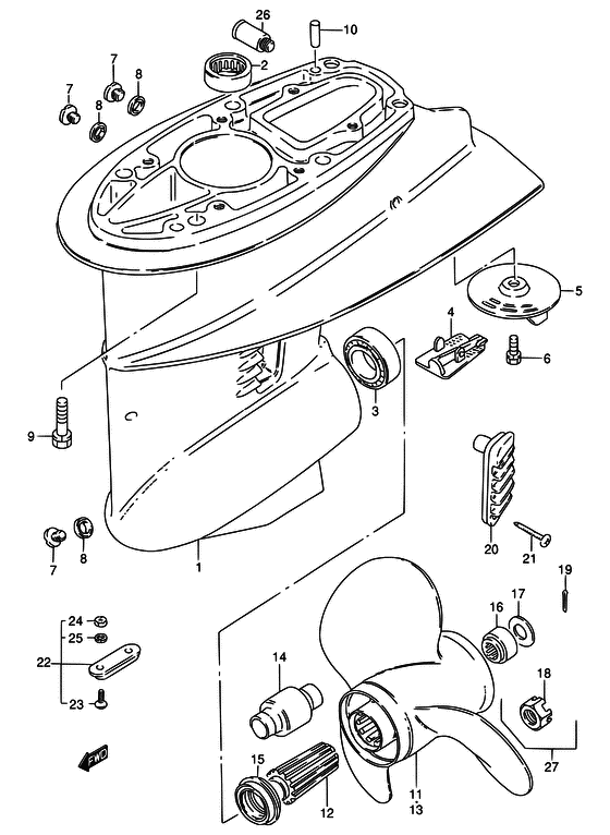 Запчасти на подвесной лодочный двигатель Suzuki модель 1992 года - Gear case