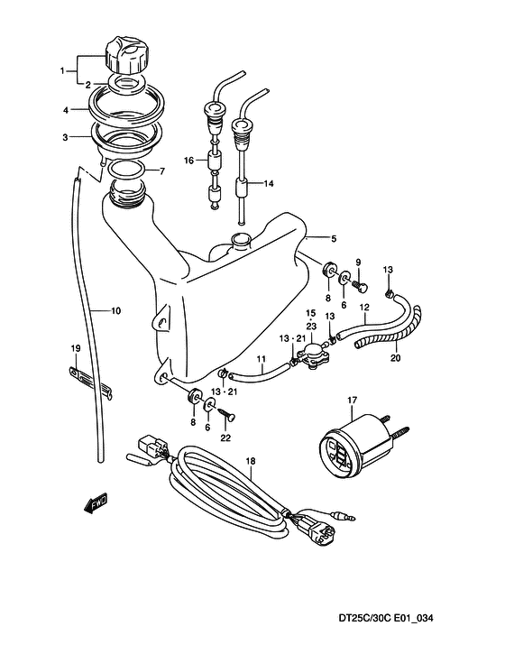 Запчасти на лодочный мотор Suzuki DT25CS/L; DT25ACS/L модель 1992 года - Oil tank - Масляный бак