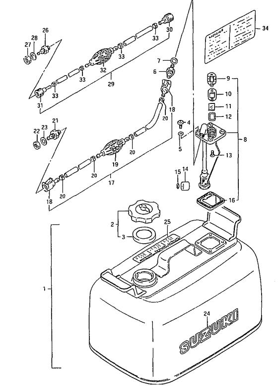 Найти запчасти на мотор SUZUKI DT25CS/L; DT25ACS/L модель 1994 года - Топливный бак