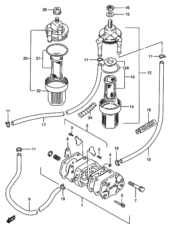 Купить оригинальные запчасти на лодочный мотор Suzuki модель 1999 года - Топливный насос / Fuel pump