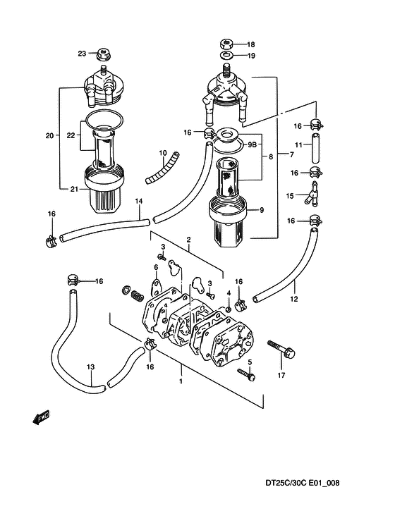Подобрать запчасти на лодочный мотор SUZUKI DT25CS/L модель 1999 года - Топливный насос