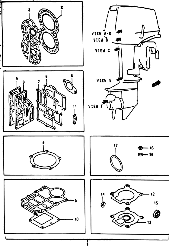 Оригинальные запчасти на подвесной двигатель Сузуки DT40К(R)S/L/LL/L2/UL; - Optional:gasket set