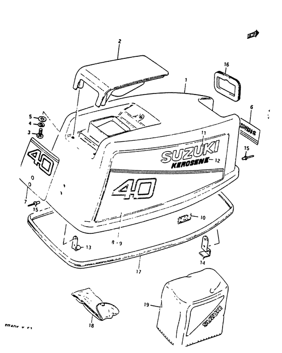 Запчасти на подвесной лодочный двигатель Suzuki DT40К(R)S/L/LL/L2/UL; модель 1988 года - Engine cover