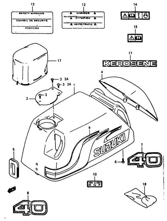 Подобрать запчасти на двигатель Suzuki DT40W(R)S/L/LL/L2/UL; - Крышка двигателя (капот)