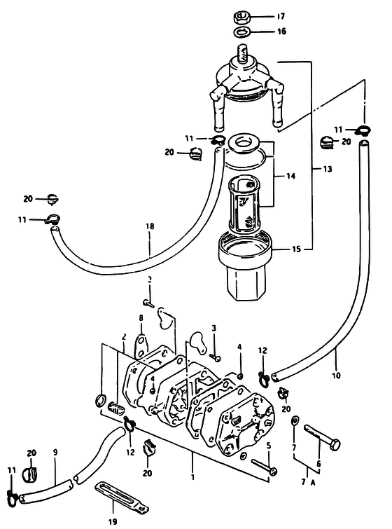 Купить оригинальные запчасти на подвесной двигатель Suzuki модель 1992 года - Fuel pump