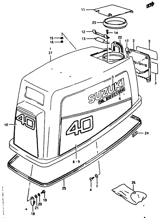 Engine cover - Крышка двигателя (капот) для Dt40c/model: 89~93