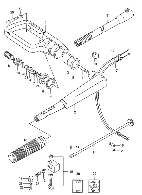 | 9 | 63131-97E02-0ED | Кронштейн рукоятки румпеля - Bracket, Tiller Handle (Bracket, tiller handle (gray);) (Bracket, Tiller Handle) | | под заказ | 0 руб. |