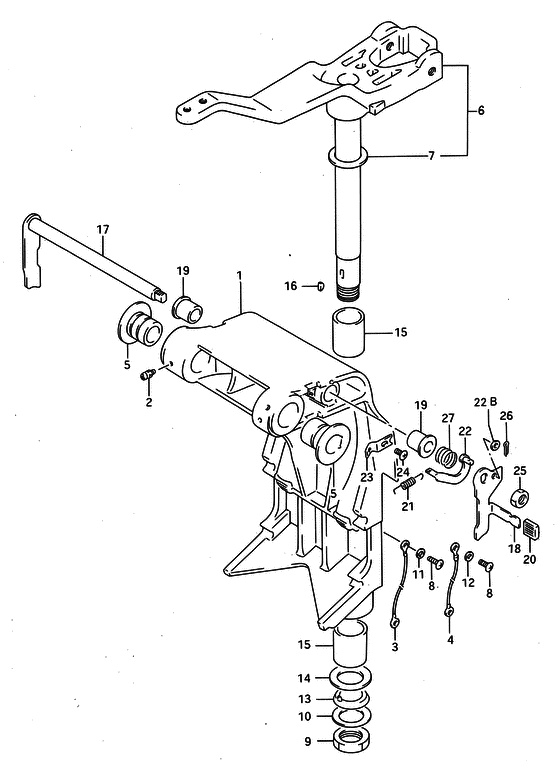 Запчасти на лодочный мотор SUZUKI DT50AS/L/LL модель 1997 года - Поворотный кронштейн
