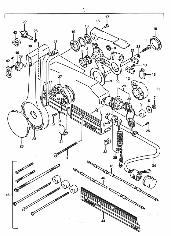 Купить оригинальные запчасти на подвесной двигатель Suzuki DT50AS/L/LL модель 1999 года - Remote control
