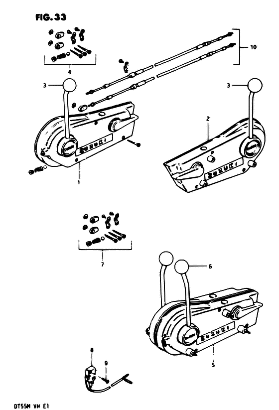 Купить оригинальные запчасти на лодочный мотор Suzuki DT55MS/L/UL - Опции : Дистанционное управление - Opt : remote control
